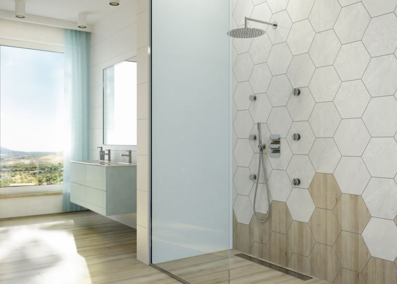 Płytki heksagonalne, czyli w kształcie sześciokątów, z których można wykonać okładziny naśladujące plaster miodu lub wzory trójwymiarowe, to w tej chwili najmodniejsze rozwiązanie w wykańczaniu wnętrz. Dzięki heksagonom, zwłaszcza małych formatów, możemy układać dowolne wzory, np. arabeski, koronki, które są bardzo atrakcyjne. Płytki o większej liczbie krawędzi pozwalają lepiej oddać zawiłości niektórych wzorów.