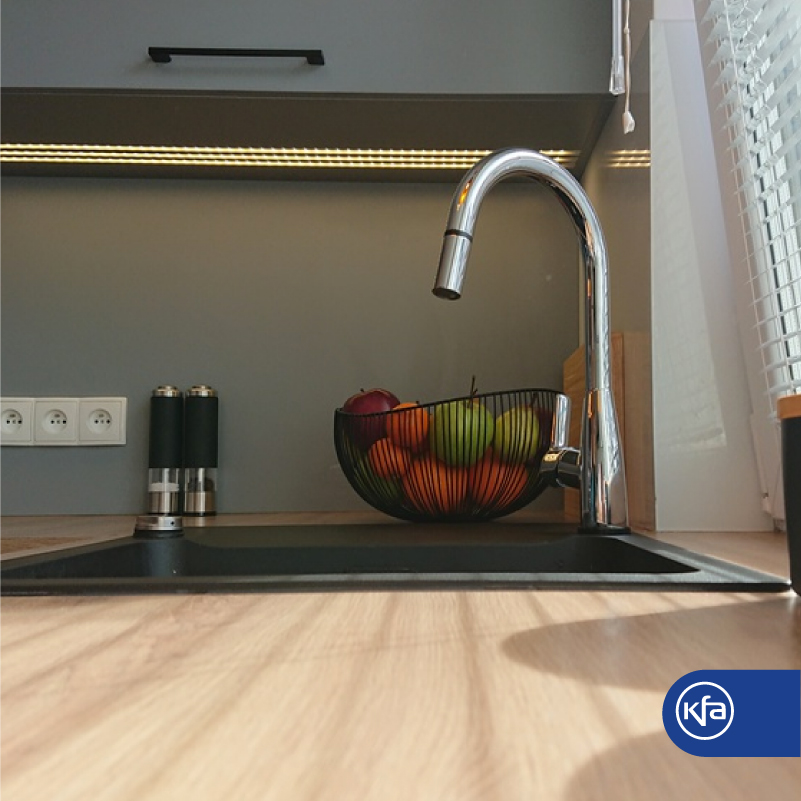 Bateria TAURI od KFA to rozwiązanie dla osób ceniących funkcjonalne i wygodne rozwiązania. Jej minimalistyczne wzornictwo pasuje do każdej kuchni. Jednak największym atutem tej baterii jest technologia Touch Me. Wystarczy czymkolwiek dotknąć baterii, swobodnie użytkować wodę w ustawionej wcześniej temperaturze i wyłączyć przepływ jednym prostym gestem. Bateria reaguje na dotyk nie tylko dłonią, ale również łokciem, talerzem, patelnią i w zasadzie czymkolwiek innym. Znacznie ułatwia to korzystanie z niej, na przykład w sytuacji gdy musimy napełnić garnek wodą i musimy go trzymać obiema rękami – wodę zatrzymamy dotykając baterię garnkiem. Już nie trzeba martwić się o to, że blat, szafki i podłoga będą mokre w wyniku próby zakręcenia wody jednym palcem lewej ręki.