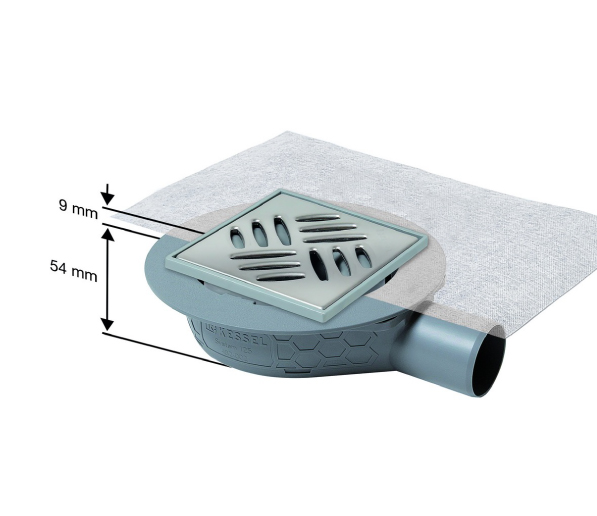 Jeśli chcemy zainstalować w łazience wpust punktowy a grubość stropu jest na tyle niewielka, że nie pozwala na zamontowanie przeciętnego odpływu podłogowego, z pomocą przychodzi nowy wpust łazienkowy Ultraflat 54 . Liczba w nazwie oznacza wysokość korpusu bez nasadki. Całkowita wysokość zabudowy wpustu wynosi tylko 63 mm. Nowe wpusty podłogowe stworzone zostały do użytku w nowo budowanych obiektach oraz do stosowania przy remontach w już istniejących budynkach. Dzięki kompaktowej konstrukcji nadają się szczególnie do natrysków bezprogowych. Posiadają boczny odpływ, wyjmowany syfon montowany w nasadce oraz, w zależności od modelu, dołączoną do kompletu lub już fabrycznie zamontowaną matę. W ten sposób możliwe jest wykonanie uszczelnień alternatywnych przy spełnieniu najwyższych wymagań klasy wodoszczelności W3 według DIN 18534-1, dzięki czemu wpust Ultraflat jest odpowiedni również do zabudowy w obiektach przemysłowych. Mimo niewielkiej wysokości zabudowy wpust jest w pełni funkcjonalny i wygodny w użytkowaniu.