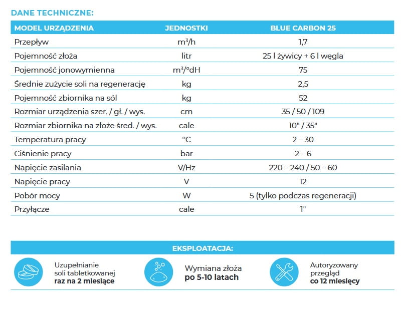 BLUE CARBON stacja zmiękczania wody z aktywnym węglem, 25L