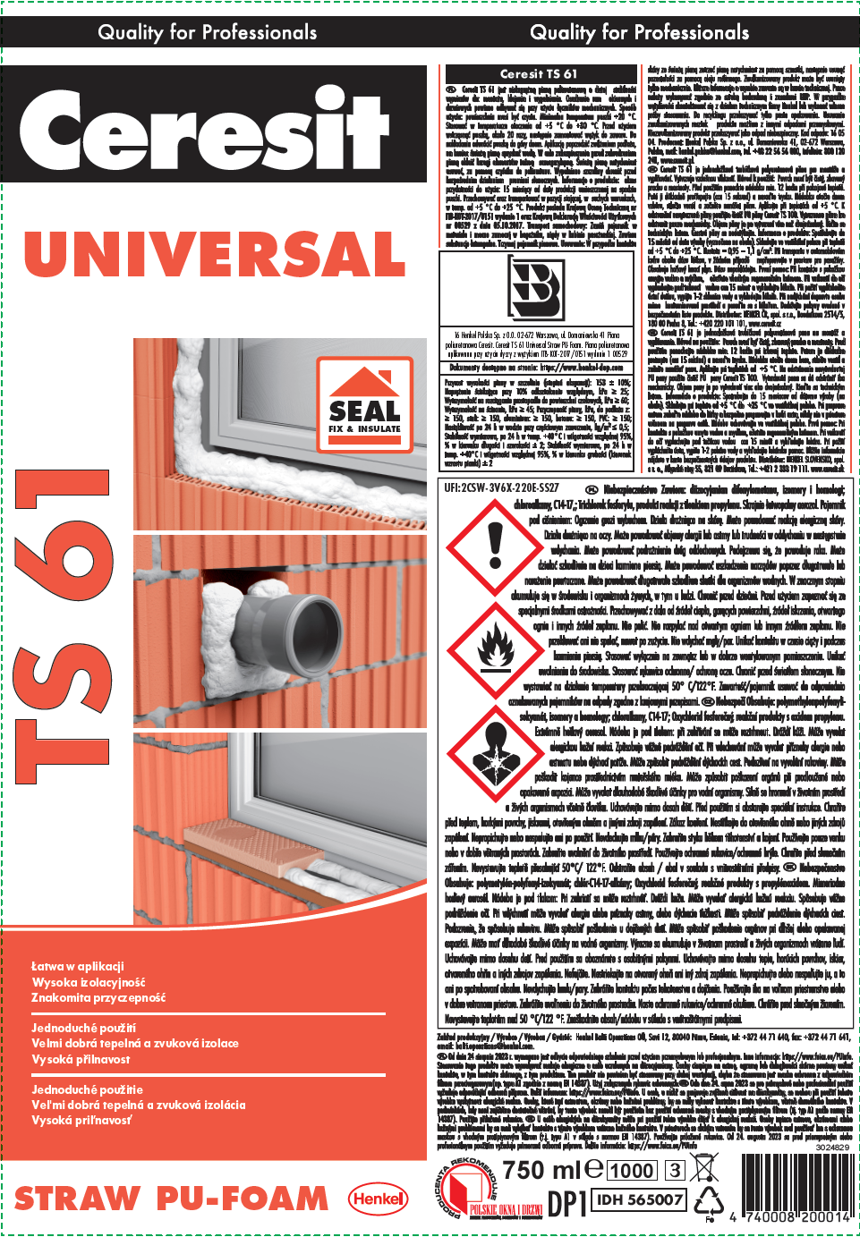 CERESIT TS 61 uniwersalna piana montażowa, 750 ml