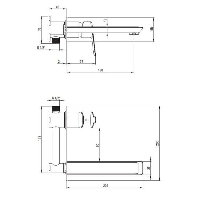 Dane techniczne: - przyłącze G1/2 - zasięg wylewki: 180 mm - szerokość baterii: 200 mm
