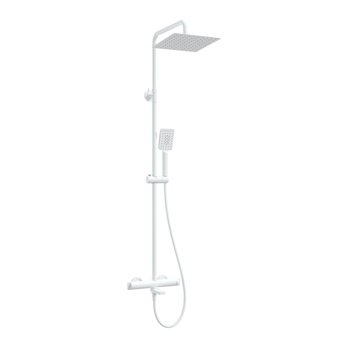 Deszczownia z baterią wannową termostatyczną to designerskie, bezpieczne i funkcjonalne rozwiązanie do nowoczesnej łazienki. Wyposażona w baterię z ruchomą wylewką, pełniącą również funkcję przełącznika natrysku, gwarantuje wygodę użytkowania. Blokada temperatury na poziomie 38°C chroni przed przypadkowym poparzeniem, zapewniając komfortową kąpiel. Ergonomiczne pokrętła umożliwiają precyzyjne sterowanie strumieniem wody, a ultra cienka głowica prysznicowa oraz 3-funkcyjna słuchawka zostały wyposażone w system anti-calc, zapobiegający osadzaniu się kamienia i ułatwiający czyszczenie. Białe matowe wykończenie nadaje deszczownicy nowoczesnego, subtelnego charakteru, doskonale komponując się z minimalistycznymi i eleganckimi aranżacjami łazienek. To połączenie estetyki i funkcjonalności, które sprawi, że każda kąpiel stanie się wyjątkowym doświadczeniem.