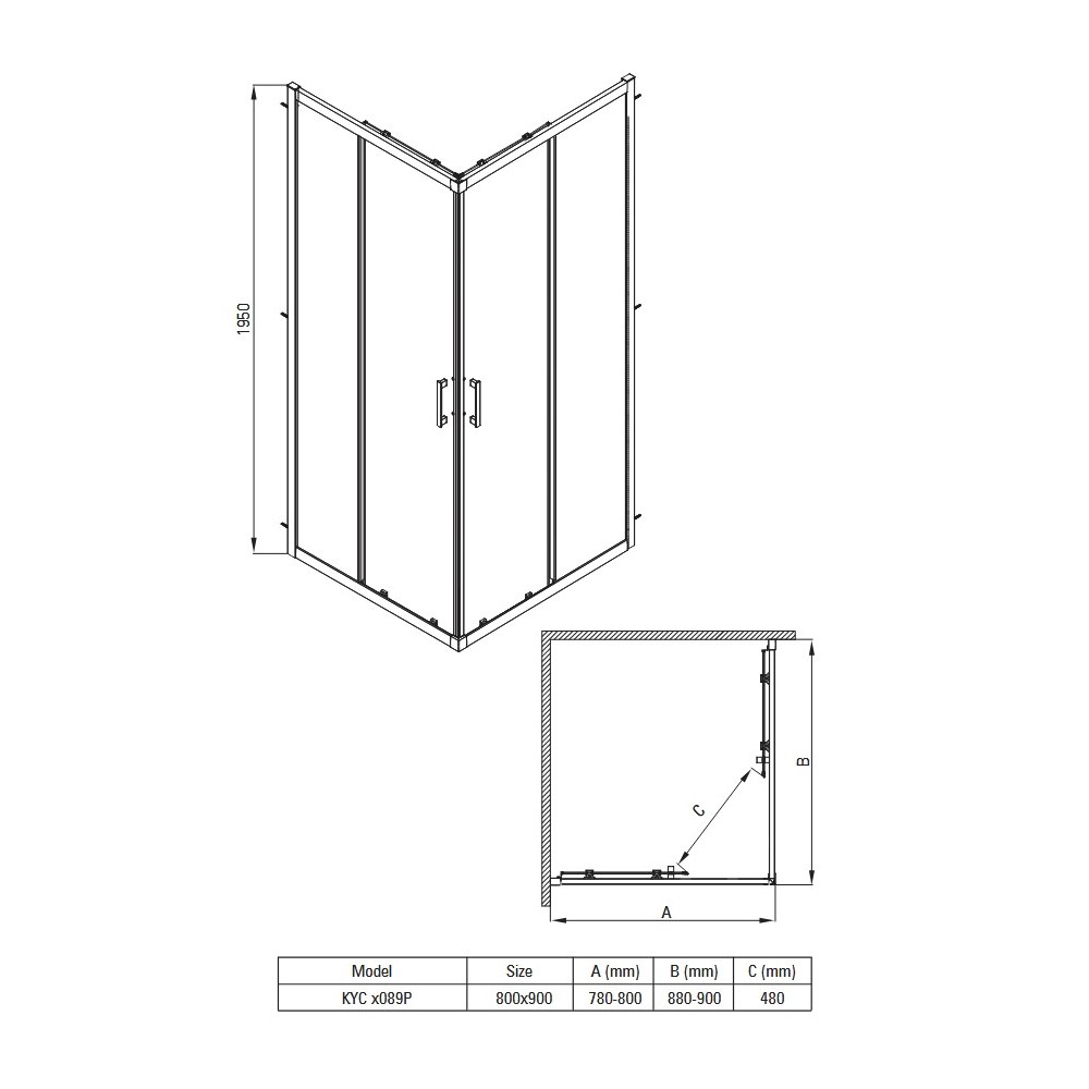 DEANTE FUNKIA EVO kabina prysznicowa 80x90 cm prostokątna profil chrom szkło transparentne