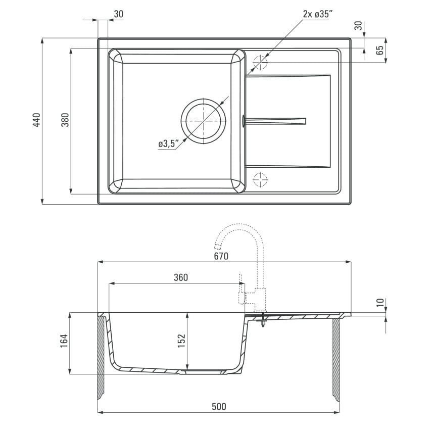 - odpływ: 3,5 cala