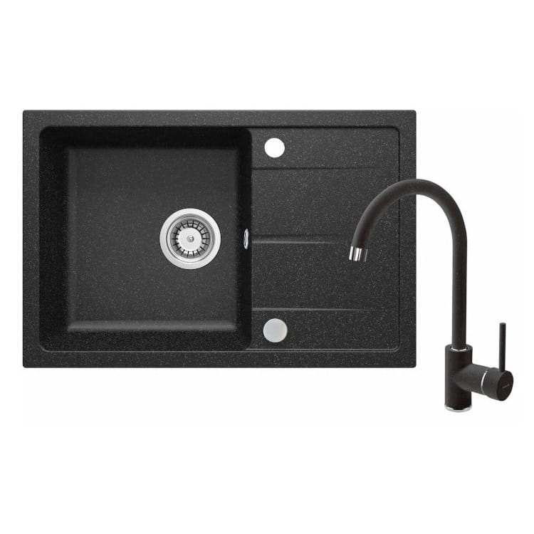 DEANTE LEDA zlewozmywak granitowy 67 cm z baterią, grafit