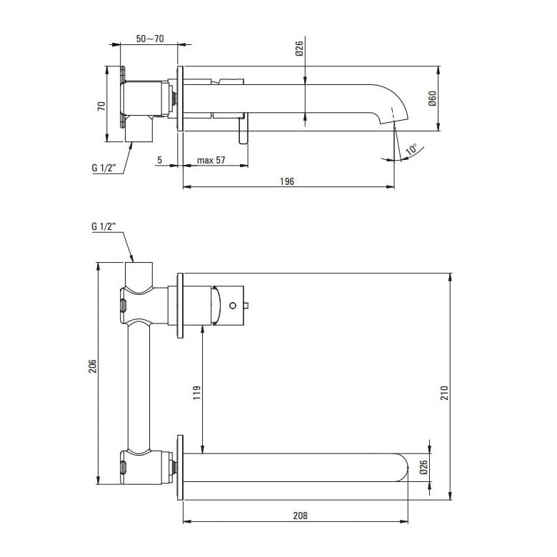 Dane techniczne: - głowica ceramiczna: 25 mm - zasięg wylewki: 196 mm - szerokość baterii: 210 mm