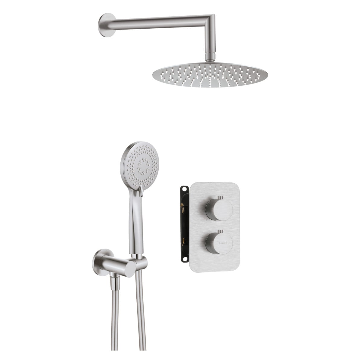DEANTE SILIA zestaw natryskowy z baterią i deszczownicą, stal szczotkowana