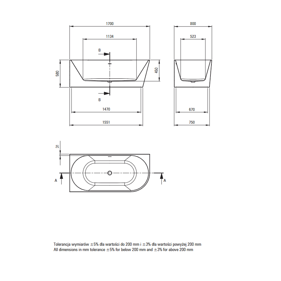 - Długość: 1700 mm