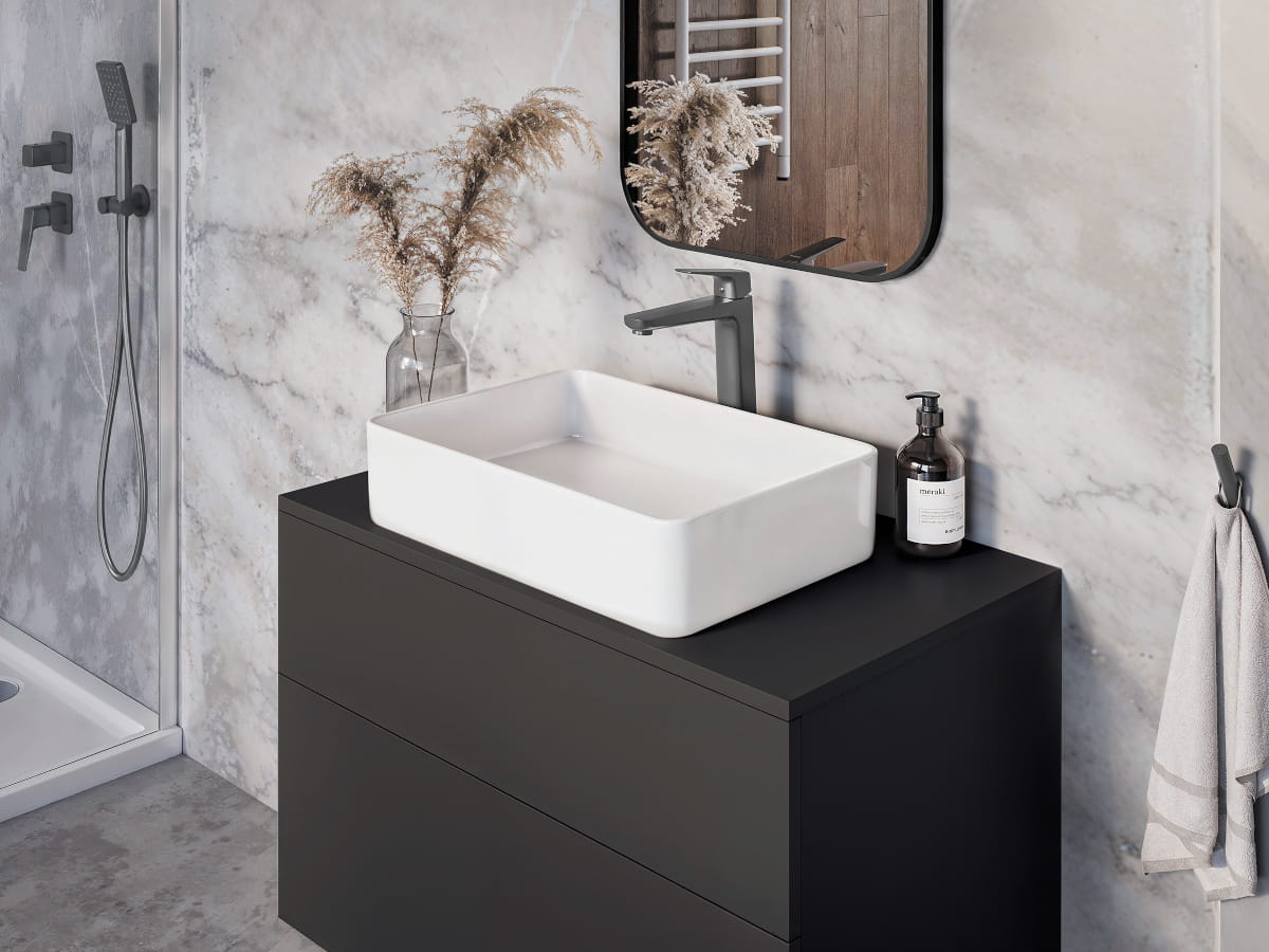 Innowacyjna wytrzymała i łatwa w czyszczeniu powłoka Titanium Grafitowostalowa powierzchnia armatury Deante TITANIUM jest efektem zastosowania innowacyjnej technologii. Stanowi niezwykły kompromis między szarością, ciemnym grafitem, czernią, a nawet subtelnym odcieniem brązu - idealna ozdoba każdej aranżacji wnętrza. Struktura powierzchni jest wytrzymała, łatwa w utrzymaniu w czystości i nie przyjmuje odcisków palców.