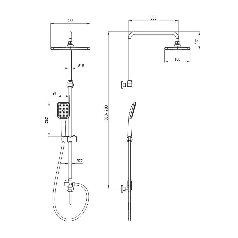 Regulowana wysokość deszczownicy Deszczownica posiada regulowaną wysokość głowicy górnej, która umożliwia dopasowanie jej do wzrostu użytkownika. Ten zakres umożliwia optymalne ustawienie wysokości deszczownicy dla wszystkich domowników.