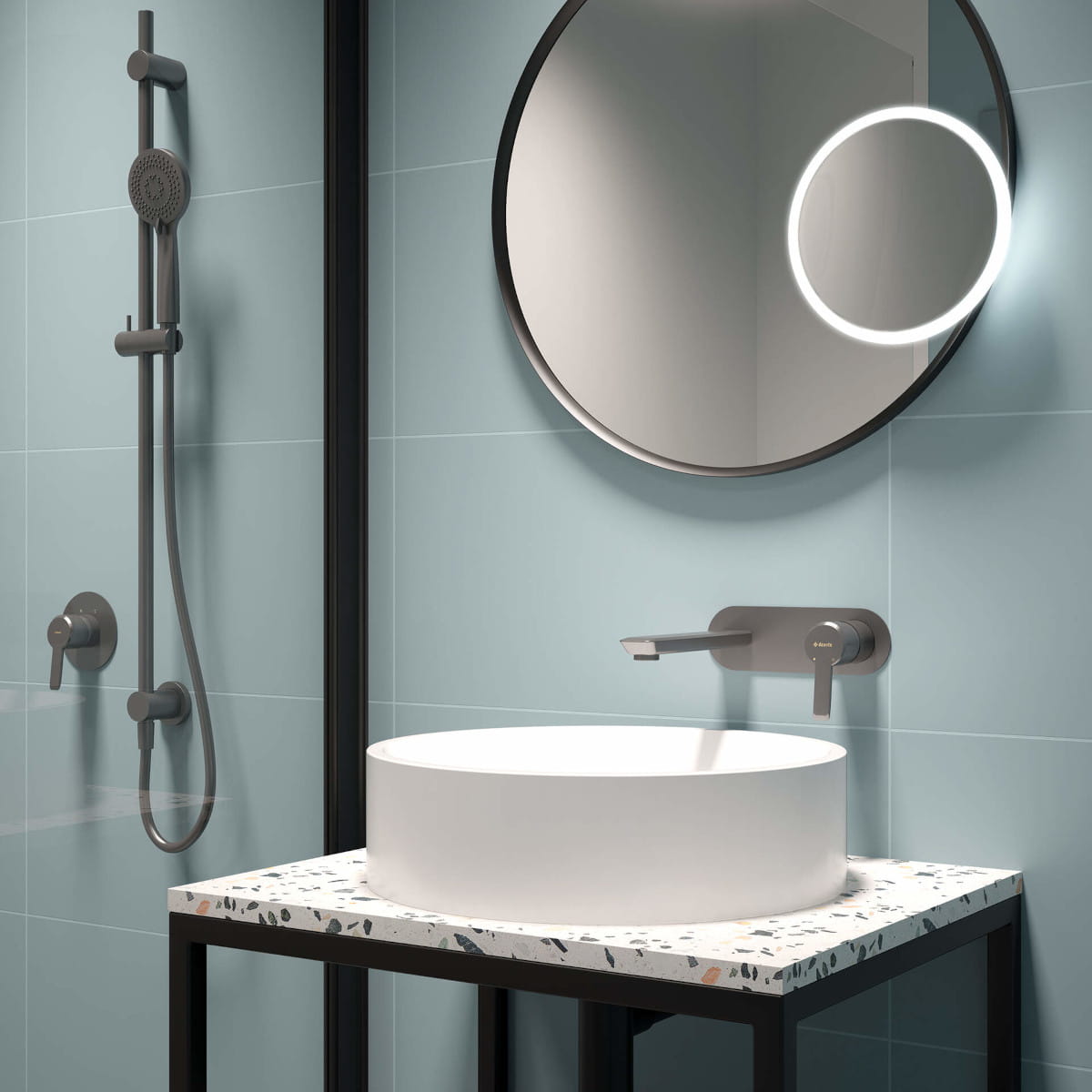Grafitowostalowa powierzchnia armatury Deante TITANIUM jest efektem wykorzystania innowacyjnej technologii. Stanowi spektakularny kompromis między szarością, ciemnym grafitem, czernią, a nawet delikatnym odcieniem brązu - idealna ozdoba każdej aranżacji wnętrza. Struktura powierzchni jest trwała, łatwa w utrzymaniu w czystości i nie przyjmuje odcisków palców.