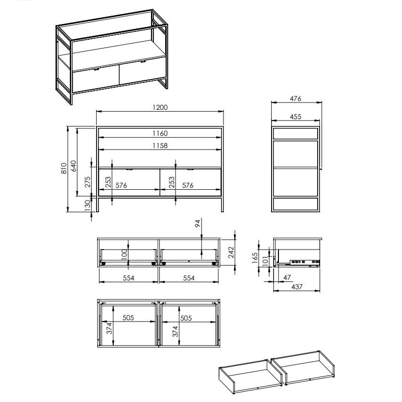 Dane techniczne: - długość: 1158 mm - wysokość: 275 mm - głębokość: 455 mm