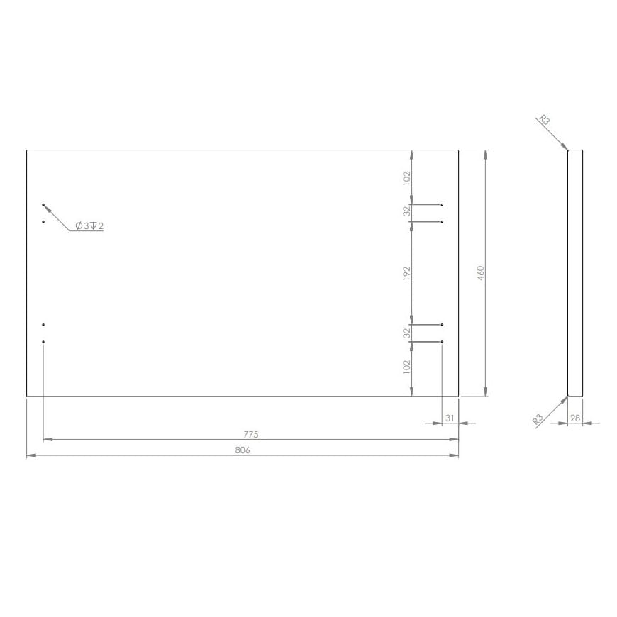 Blat wykonany jest z płyty MDF pokryty folią polimerową, która dzięki swoim właściwościom posiada dużą wytrzymałość na wilgoć, uszkodzenia mechaniczne oraz jest bardzo łatwa w czyszczeniu.