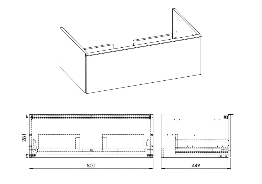 Główne cechy: - kolor: antracyt - montaż: wisząca - 1 szuflada z funkcją cichego samodomyku oraz z pełnym wysuwem - wykonana z materiałów wysokiej jakości - front i korpus lakierowany - możliwość łączenia z umywalką lub blatem - wymiary 800x281x449 mm
