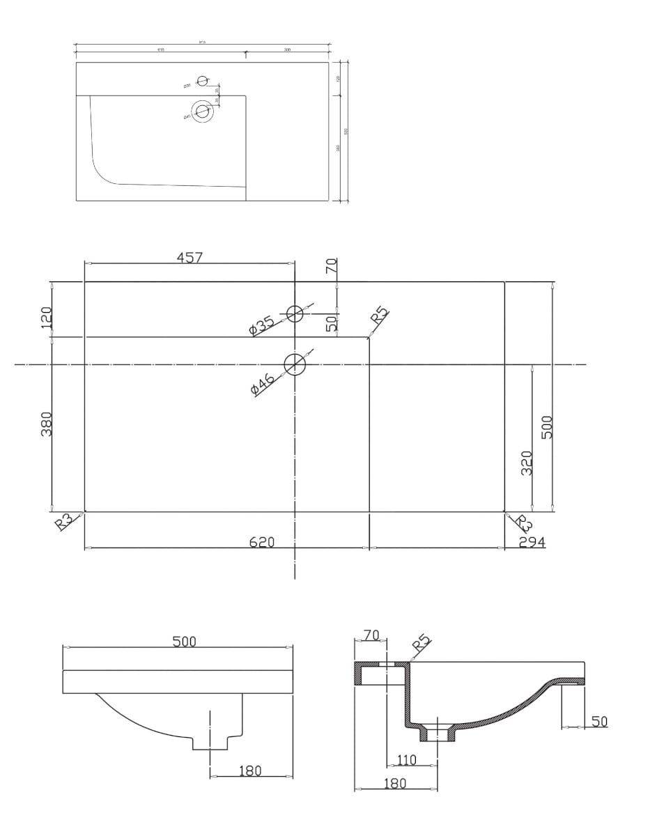 Dane techniczne: - długość: 920 mm - szerokość: 500 mm