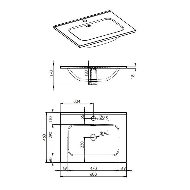 Umywalka do kompletowania z szafkami z serii Look, Ambio, Inge, Desi Plus, Soho.