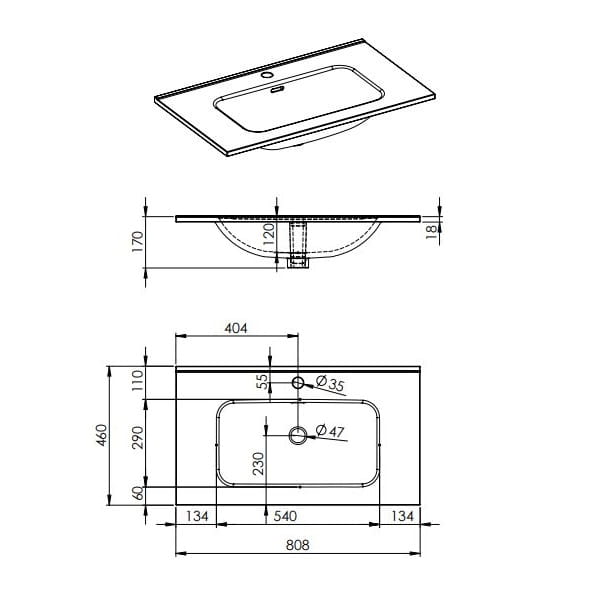 Dane techniczne: - długość: 808 mm - szerokość: 460 mm