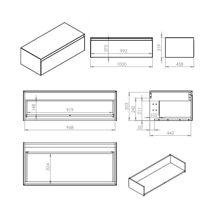 Dane techniczne: - długość: 1000 mm - wysokość: 319 mm - głębokość: 458 mm