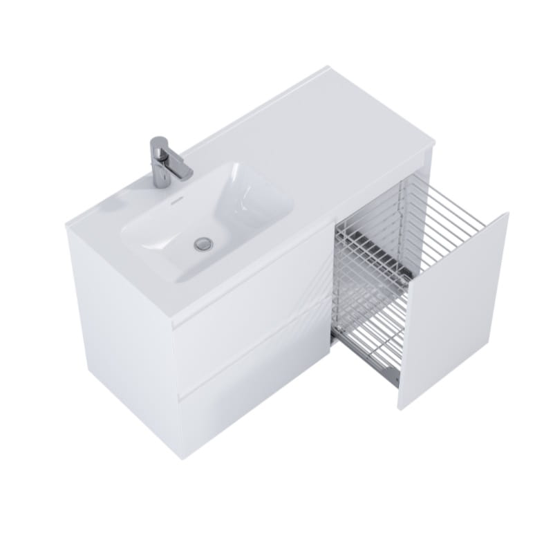 Szafka przygotowana do łączenia z umywalką meblową, którą należy zakupić oddzielnie.