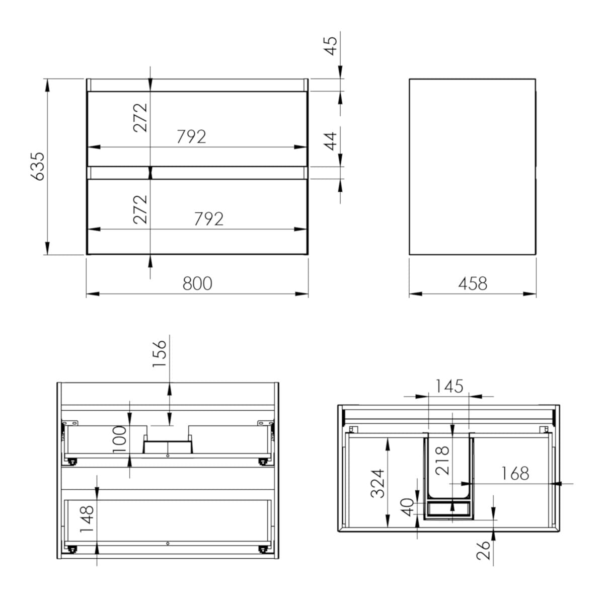 Dane techniczne: - szerokość: 800 mm - wysokość: 635 mm - głębokość: 458 mm