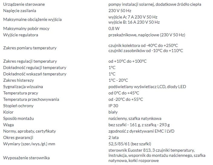 Steruje systemem solarnym, kontroluje temperaturę kolektora słonecznego oraz maksymalnie dwóch zasobników, odpowiednio do wybranego trybu pracy.