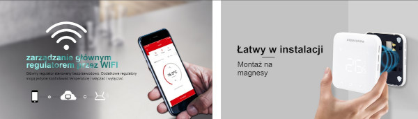 System sterowania ogrzewaniem podłogowym Sterfloor T8WIFI to nowoczesny i komfortowy w użyciu kompletny system, który pozwala zarządzać i sterować temperaturą za pośrednictwem kontrolerów sterowanych z aplikacji na telefonie. Wygodna i prosta w montażu technologia sprawia, że jest to doskonałe rozwiązanie nie tylko dla nowo projektowanych instalacji, ale również dla już istniejących. Montaż regulatorów na zatrzaski magnetyczne pozwala w prosty sposób montować i demontować je w dowolnym miejscu, a wbudowane zabezpieczenia sterowania głównym regulatorem (tzn. Master) czynią z niego rozwiązanie przyjazne i odporne na działanie np. dzieci.