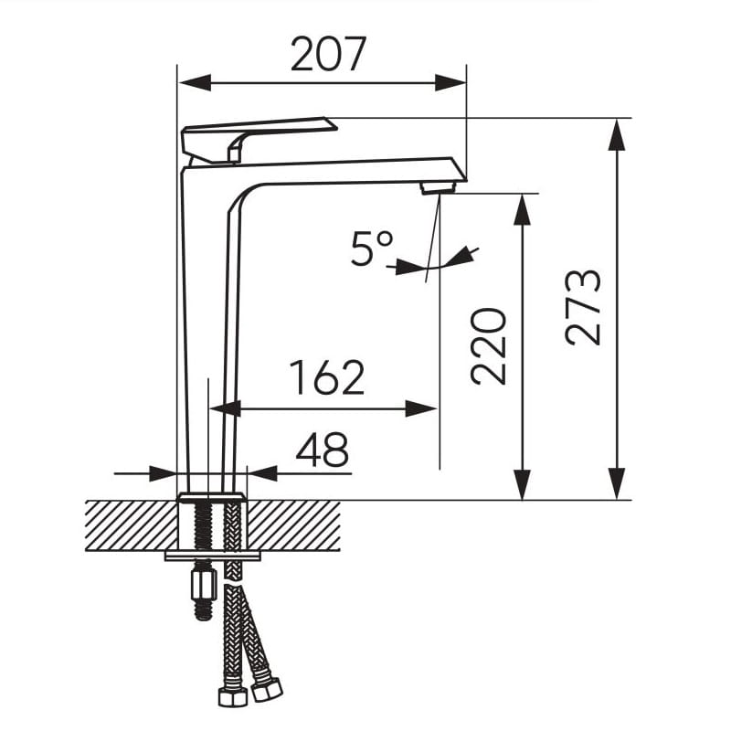 W komplecie z baterią znajduje się zestaw przyłączeniowy, spust click clack oraz wężyki przyłączeniowe.