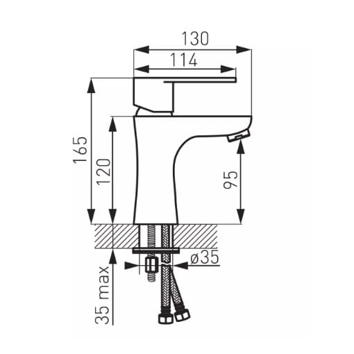 Dane techniczne: - regulator strumienia M24x1 - przyłącza elastyczne G3/8 - M10x1 - wysokość baterii: 165 mm - przepływ wylewka [l/min]: 2.7