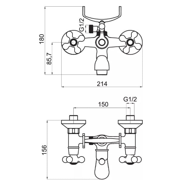 Dane techniczne: - przyłącze mimośrodowe G1/2 - zasięg wylewki: 156 mm - szerokość baterii: 214 mm