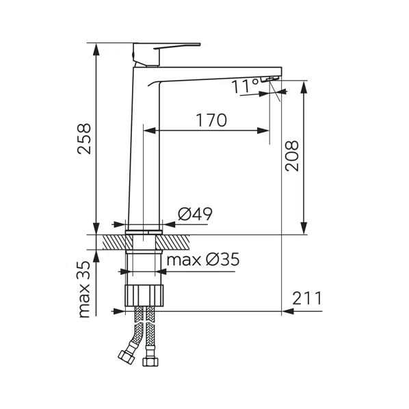 Dane techniczne: - wysokość baterii: 258 mm - aerator M24x1 - klik-klak G5/4
