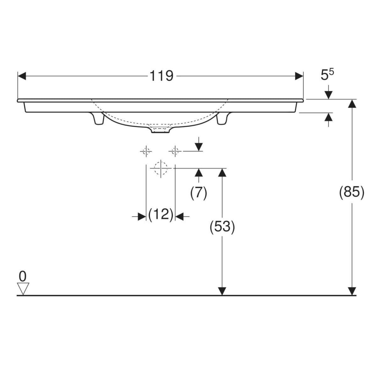 Główne cechy: - kolor: biały - powierzchnia: KeraTect - materiał: ceramika sanitarna - montaż: nablatowa - kształt: prostokątna - wylot poziomy - cienki rant - bez przelewu - otwór na baterię na środku