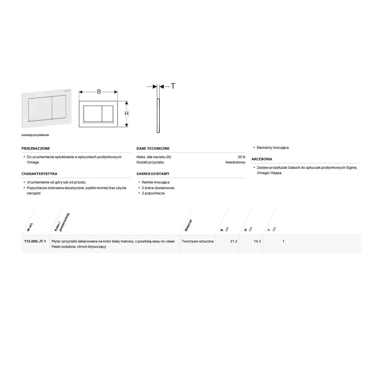Przeznaczenie: Do uruchamiania spłukiwania w spłuczkach podtynkowych Omega Charakterystyka: Uruchamianie od góry lub od przodu Popychacze izolowane akustycznie, szybki montaż bez użycia narzędzi Zakres dostawy: Ramka mocująca 2 bolce dystansowe 2 popychacze Elementy mocujące