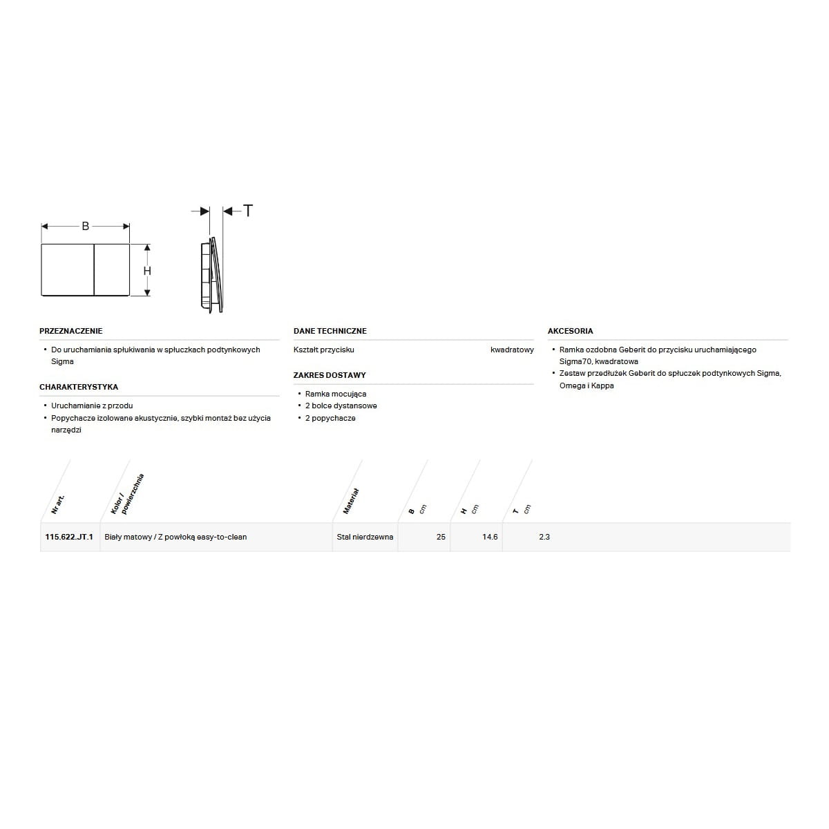 Uruchamianie z przodu. Popychacze izolowane akustycznie, szybki montaż bez użycia narzędzi. Do uruchamiania spłukiwania w spłuczkach podtynkowych Sigma