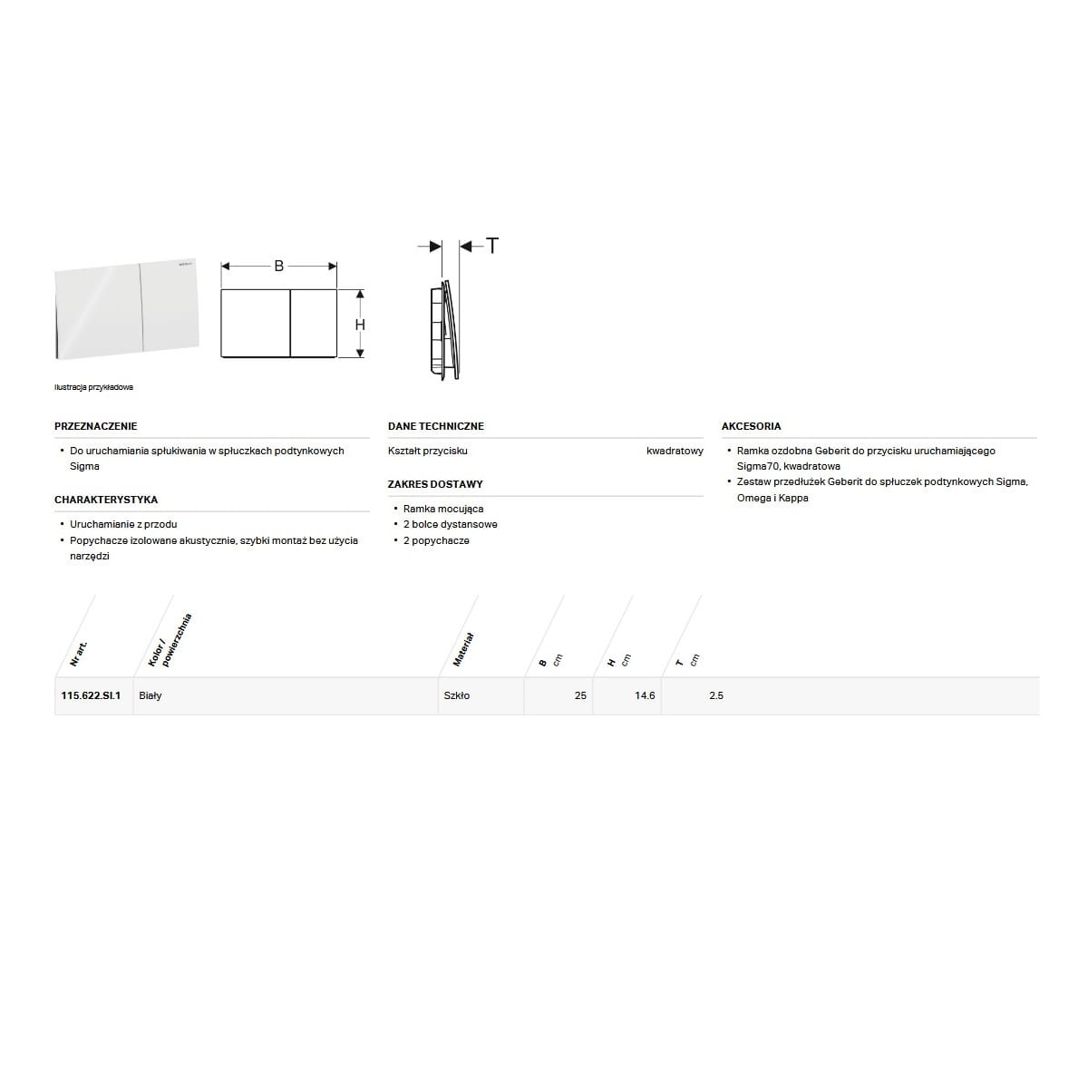 Uruchamianie z przodu. Popychacze izolowane akustycznie, szybki montaż bez użycia narzędzi. Do uruchamiania spłukiwania w spłuczkach podtynkowych Sigma