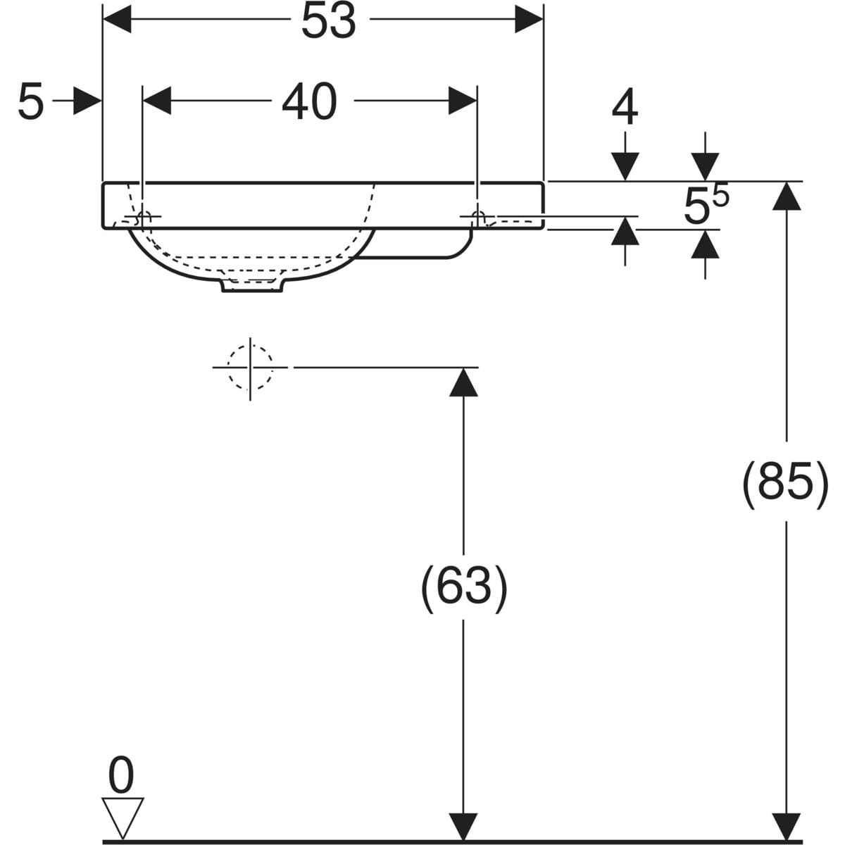 GEBERIT Umywalka ICON LIGHT kompaktowa, B53cm, H13cm, T31cm, bez przelewu, bez otworu na baterię, z powierzchnią odkładczą po prawej stronie, biały, KeraTect