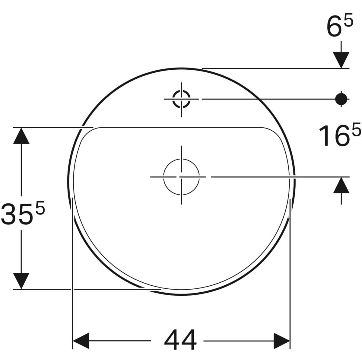 GEBERIT Umywalka VARIFORM wpuszczana w blat, okrągła, z półką, D48cm, H17.8cm, bez przelewu, z otworem na baterię, szkliwiony spód