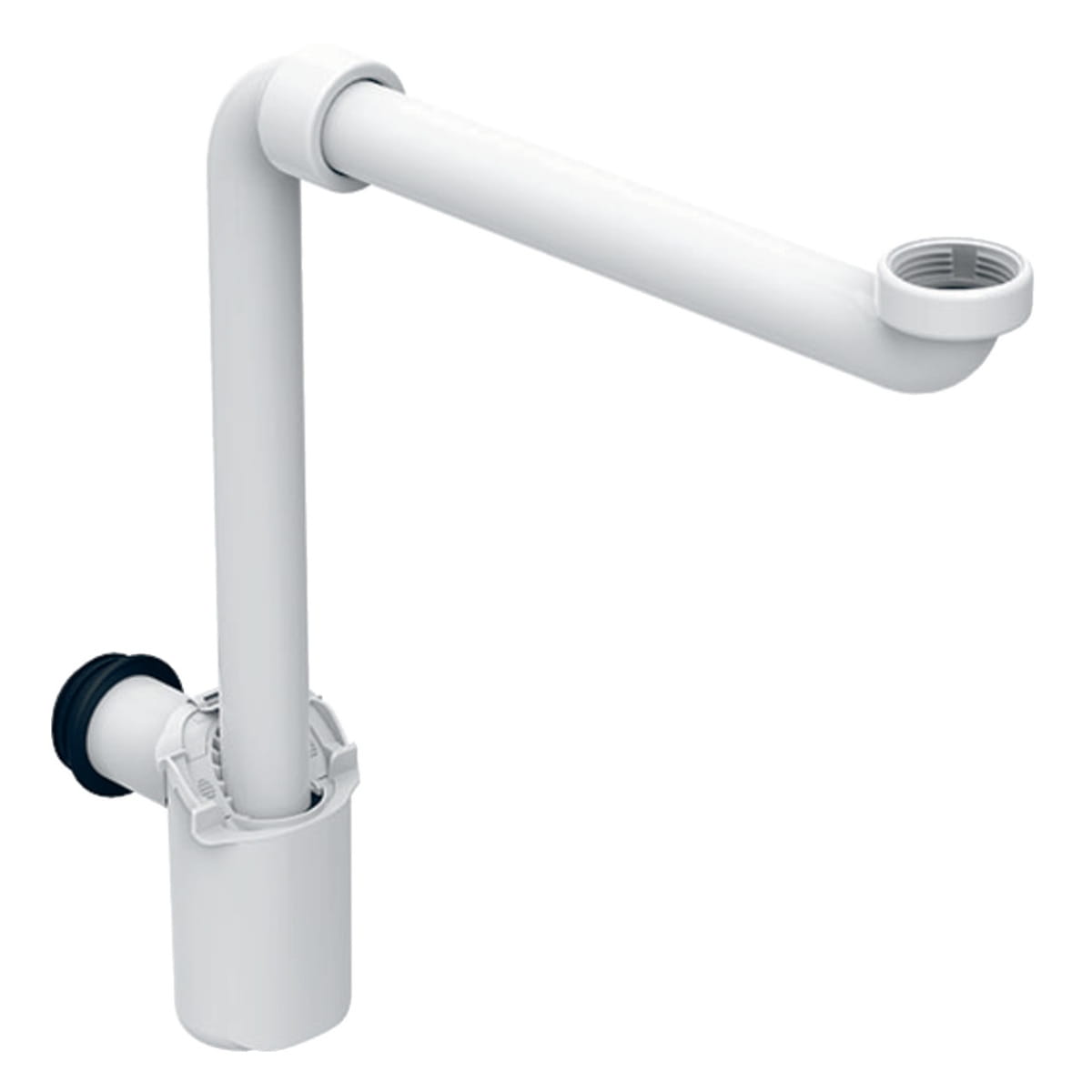 Główne cechy: - kolor: biały - materiał: PP - model oszczędzający przestrzeń - możliwy dostęp w celu wyczyszczenia - wylot poziomy - w zestawie uszczelni oraz kolano przyłączeniowe z nakrętką
