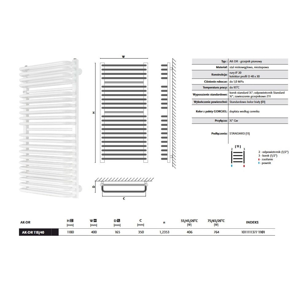 GORGIEL AK-DR 118/40 grzejnik łazienkowy, biały
