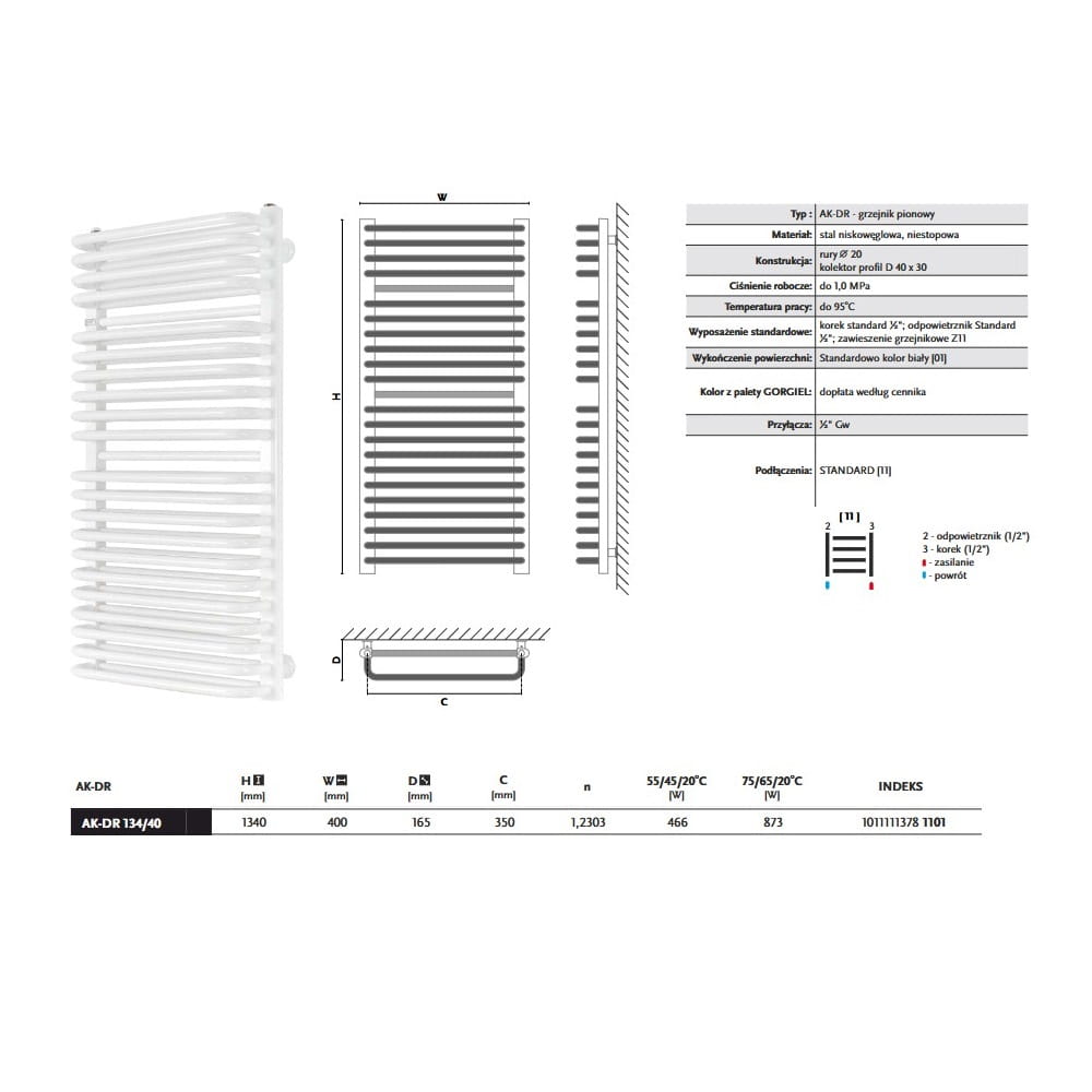 GORGIEL AK-DR 134/40 grzejnik łazienkowy, biały