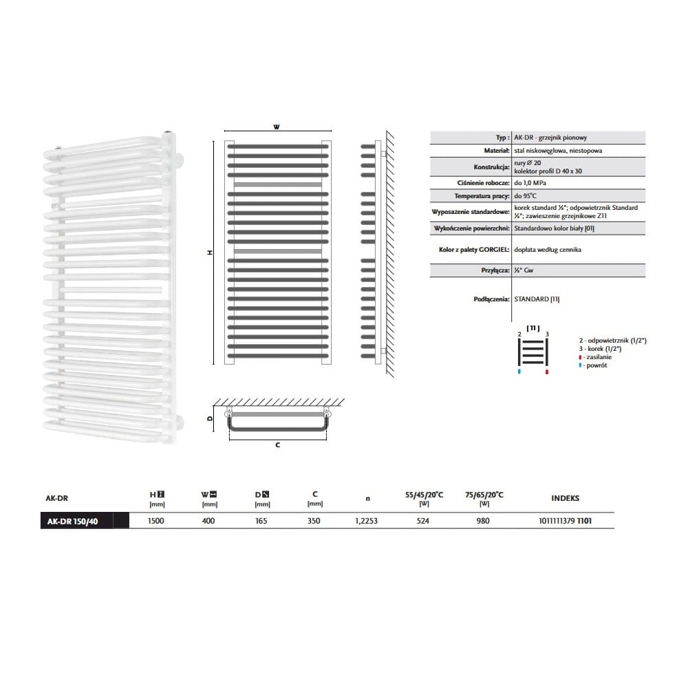 GORGIEL AK-DR 150/40 grzejnik łazienkowy, biały