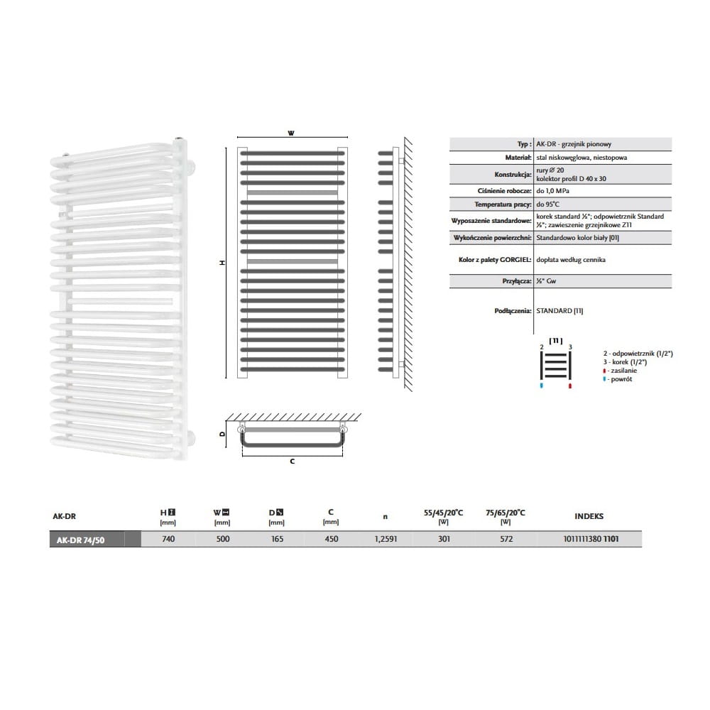 GORGIEL AK-DR 74/50 grzejnik łazienkowy, biały