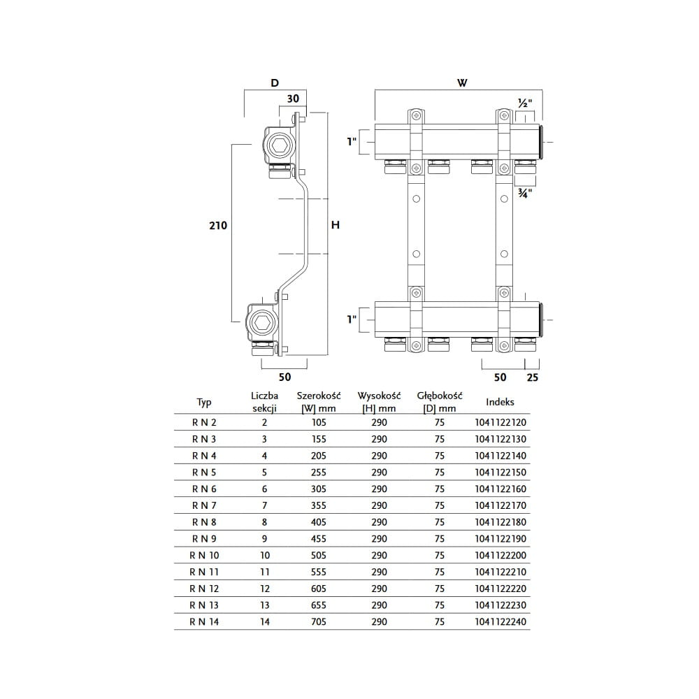 GORGIEL rozdzielacz mosiężny 1" z nyplami 3-drogowy