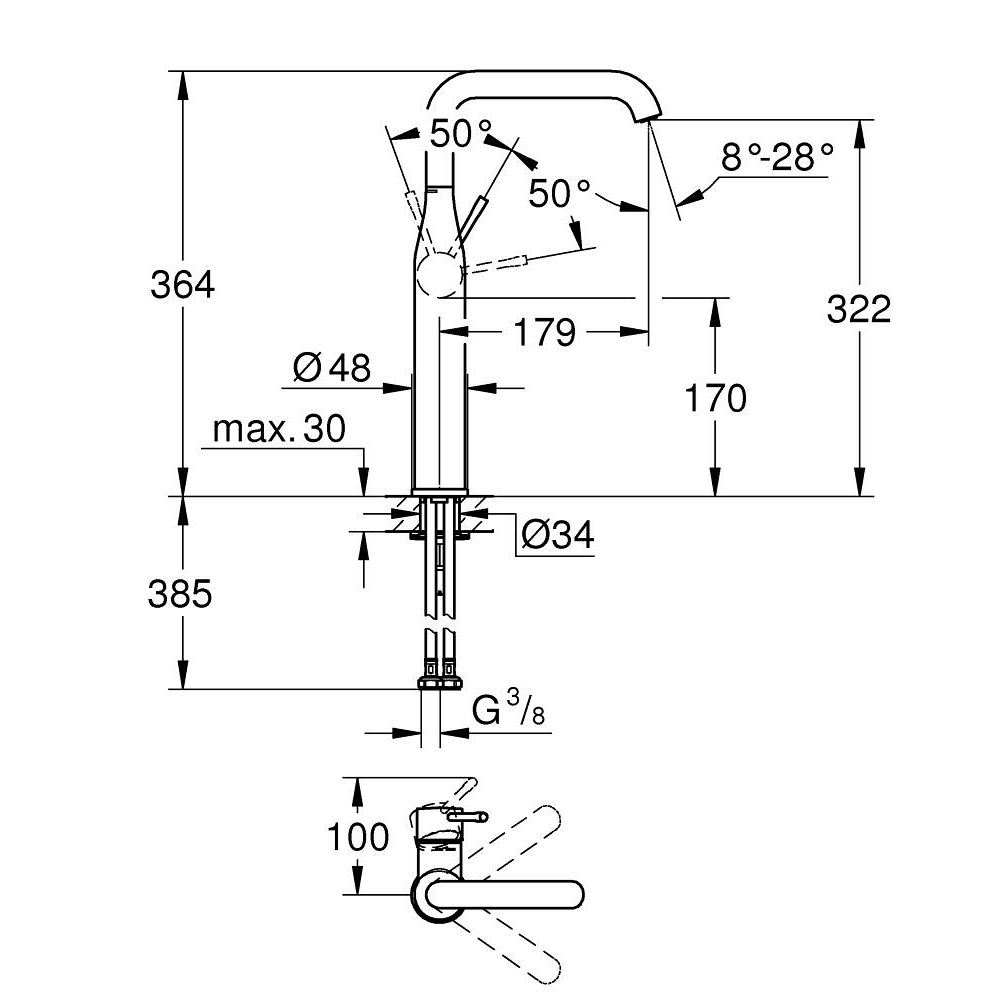 - obrotowa wylewka z perlatorem i ogranicznikiem obrotu
