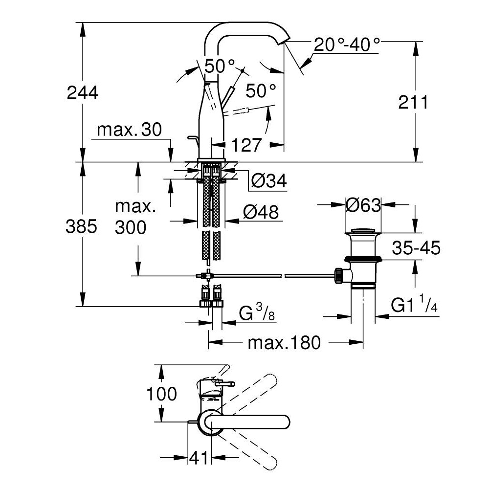 GROHE ESSENCE bateria umywalkowa stojąca z korkiem chrom