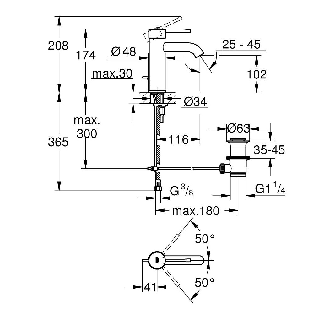 - zasięg wylewki: 116 mm