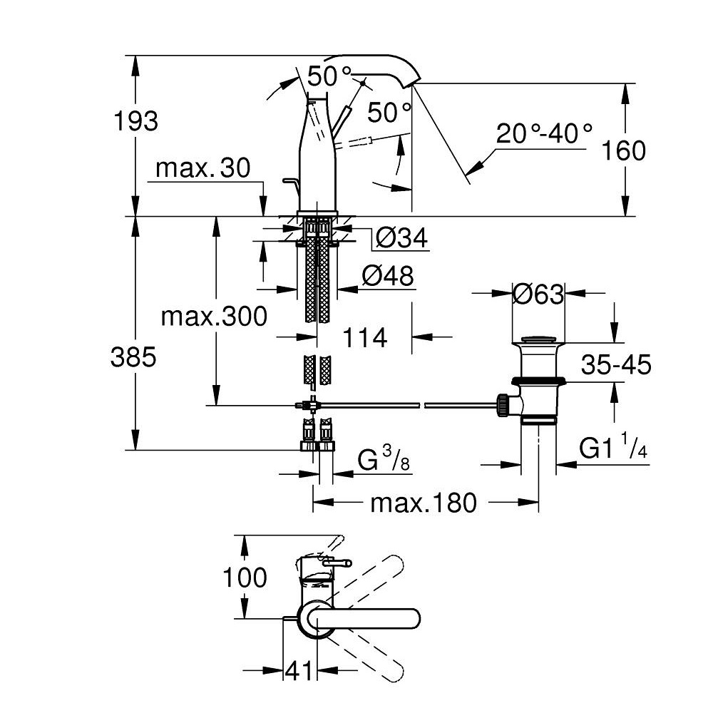 GROHE ESSENCE bateria umywalkowa stojąca z korkiem hard graphite