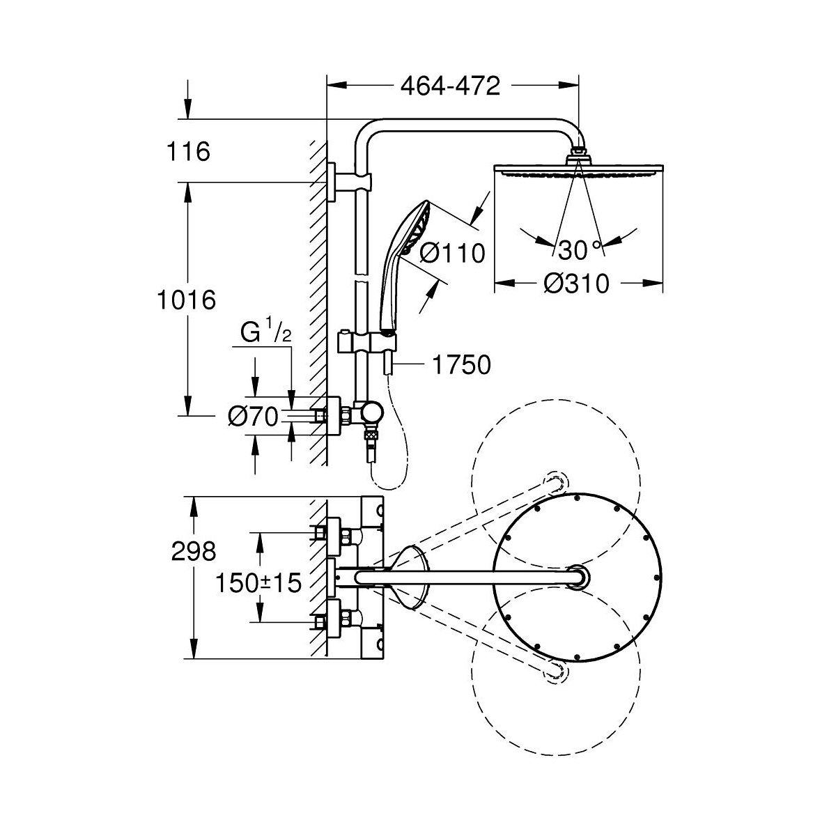 GROHE EUPHORIA 310 zestaw natryskowy termostatyczny z baterią i deszczownicą stal nierdzewna