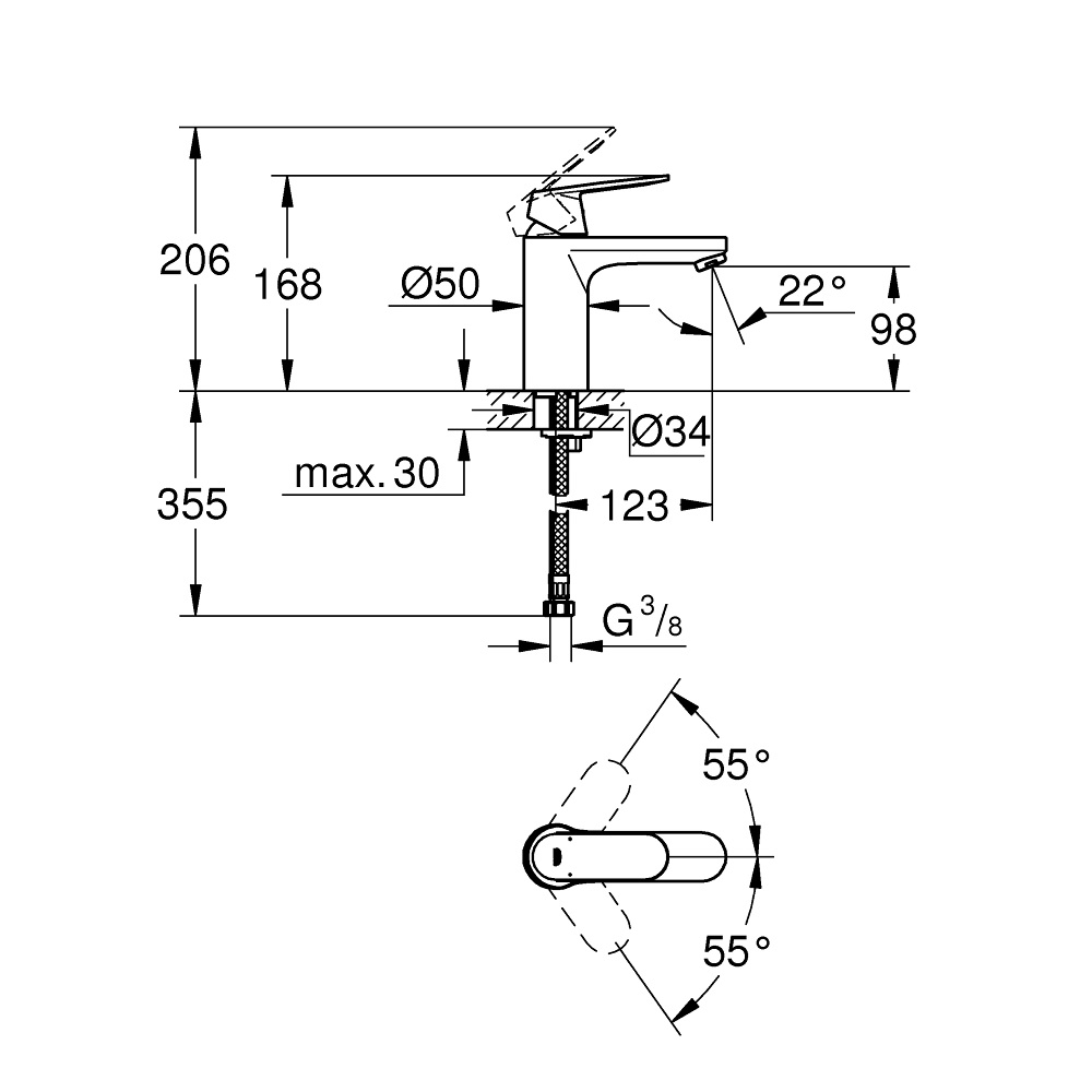 - zasięg wylewki: 123 mm