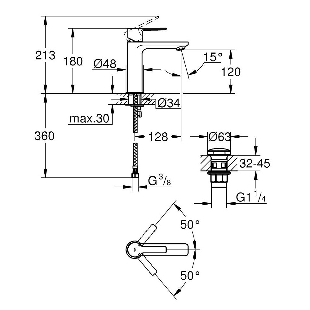 GROHE LINEARE bateria umywalkowa stojąca z korkiem brushed hard graphite